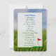 Cerca de una pelota blanca de golf sobre una teta roja en el césped para la invitación de la fiesta de cumpleaños 40.