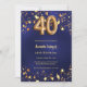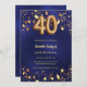 Invitación 40.º cumpleaños estrellas de oro azul marino