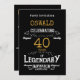 Invitación 40.º cumpleaños Nacido legendario Black Gold Retro