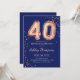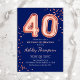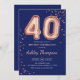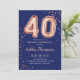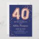 40.ª invitación a la fiesta de cumpleaños. Elegante diseño en falso oro rosa purpurina y azul marino. Características de la tarjeta de invitación rosa oro número 40 globos y tipo de letra del guión. Perfecto para una elegante celebración de cumpleaños. Mándame un mensaje si necesitas edad personalizado.