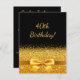 Elegante, clásico, glamuroso y femenino. Cinta dorada y arco con purpurina dorado y brillo, un poco de ostentación y lujo para un cumpleaños. Fondo negro. Con el texto: 40th Birthday! en el frente Añadir los detalles del evento en el reverso.