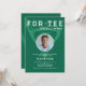 Celebre con estilo esta invitación de cumpleaños con temática de golf, con el ingenioso juego de palabras "For-Tee (y todavía a la par)" para disfrutar de un toque divertido y deportivo. Con un fondo verde vibrante, este diseño muestra un atrevido club de golf y un ilustracion de té, con una foto de personalizable del honor de cumpleaños dentro de la pelota de golf. La parte trasera del golf continúa con el tema con un elegante gráfico de club de golf, lo que lo convierte en la elección perfecta para cualquier celebración de cumpleaños de un amante del golf. Personalizable completo con los detalles de su fiesta, esta invitación es ideal para fiestas con temas de golf, cumpleaños de hitos y entusiastas del deporte. Personaliza el tuyo hoy mismo para un evento único y memorable.