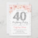 Invitación 40.º Fiesta de cumpleaños - Rosa Plata Blanca