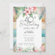Diseño de plantilla de diseño de diversiones de madera tropical floral y playa. Ajustable para la fiesta de cumpleaños de adultos tropicales, sólo cambia las invitaciones de texto. Invitación de descarga digital imprimible