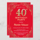 40.ª Invitación de cumpleaños de Purpurina rojo y oro. Para una mayor personalización, haga clic en el botón "Personalizar" y utilice nuestra herramienta de diseño para modificar esta plantilla.
