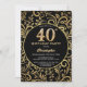 Invitación 40.º Nacimiento Patrón Floral Negro y Oro