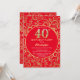 Invitación 40.º patrón floral de oro y rojo de cumpleaños