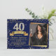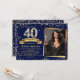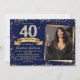 Elegantes invitaciones para fiestas de cumpleaños número 40 con un elegante fondo azul marino, una foto del Chica Bday, un purpurina brillante de oro y una plantilla de texto moderna que es fácil de personalizar. Elementos coincidentes disponibles.