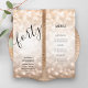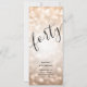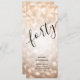 Elegante Glam Rosa Gold Purpurina Lights 40th Birthday Script plantilla con texto de menú fiesta, luces purpurinas y escritura moderna de tipografía.