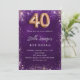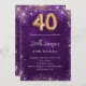 Celebra un cumpleaños especial por 40 con esta impresionante invitación, perfecta para un fiesta elegante. El fondo morado profundo presenta una hermosa textura desigual, acentuada por el oro rosa y los chismes de imitación dorados. El nombre está escrito en un guión delicado y con letras a mano, añadiendo un toque personalizado y sofisticado. Personalizar la invitación añadiendo el nombre y todos los detalles importantes del fiesta. Este lujoso diseño marca la pauta para una celebración inolvidable.