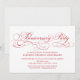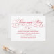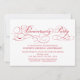 Invitación de fiesta de aniversario con letra roja en fondo blanco