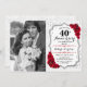 Invitación al 40° aniversario del Boda con foto. Elegante diseño en rojo rubí y blanco con una falsa plata purpurina. Presenta fuente de guión, rosas rojas y confetti. ¡Puede ser personalizado en cualquier año! Mándame un mensaje si necesitas más personalización.