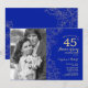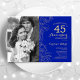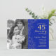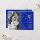 40 Aniversario con foto - Invitación de oro blanco zafiro. Diseño moderno azul real con acentos de dibujos de contorno botánico y tipografía de letra script. Tarjeta de invitación sencilla y de moda perfecta para una celebración de aniversario de bodas con estilo. Se puede personalizar para reflejar cualquier año de matrimonio. Impresiones de invitaciones de Zazzle o plantilla digital descargable instantáneamente.