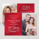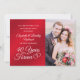 Celebre su 40º aniversario de bodas con esta elegante invitación de foto roja rubí y blanca con un diseño de tipografía de escritura a mano 40 AÑOS EN EL PARAÍSO acentuado con corazones entrelazados y 2 fotos (una en cada lado, quizás fotos de Entonces y Ahora para un recuerdo memorable). El título también es editable para usar en un 15º u 80º aniversario de rubí. Contacte al diseñador a través de Zazzle Chat o makeitaboutyoustore@gmail.com si desea que se modifique este diseño o en otro color, en otro producto o si desea artículos coordinados.