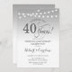 Invitación de Celebración del 40 Aniversario de Boda. Diseño plateado y blanco con luces de hadas y fuente elegante. ¡Salud por 40 años! ¡Se puede personalizar para cualquier año de matrimonio! Envíame un mensaje si necesitas más personalización.