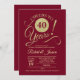 Invitación de fiesta de aniversario número 40 en rojo rubí con dorado de falso brillo. ¡Salud por 40 años! Perfecto para una celebración elegante.