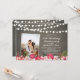 Celebre su día especial con esta invitación de aniversario de bodas con foto personalizada. Este diseño presenta hermosas flores rojas y rosadas y luces de cuerda sobre un fondo de madera rústica. Usted puede personalizar el texto para cualquier año. Reemplace la foto de muestra con su propia foto. Suministros para fiestas que coinciden disponibles en mi tienda BaraBomDesign.
