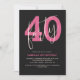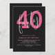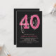 Celebra tu 40 cumpleaños con estilo con esta moderna y audaz invitación de fiesta de cumpleaños. Con un fondo negro apagado, el gran número 40 está en negrita rosa con tipografía de escritura crema clara de cuarenta sobre la parte superior. Debajo, en tipografía de color crema y rosa, puede personalizar fácilmente con los detalles de su fiesta.