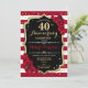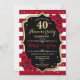 Invitación de fiesta de aniversario de bodas de rubí rojo 40. Tarjeta de invitación elegante roja, negra y blanca con dorado falso brillante. Cuenta con rayas elegantes, fuente de escritura y rosas rojas. Perfecta para una celebración de 40 aniversario.