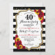 Invitación de Bodas de 40 Aniversario. Diseño elegante con rayas negras y blancas y falso brillo dorado. Cuenta con fuente de escritura y confeti. Puede ser personalizado para cualquier año de aniversario. Envíame un mensaje si necesitas alguna personalización adicional.