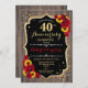 Invitación 40 Aniversario de Boda. Diseño rústico elegante con patrón de madera marrón oscuro y falso brillo dorado. Confeti, girasoles y rosas rojas. Puede ser personalizado para cualquier año de aniversario. Envíame un mensaje si necesitas alguna personalización adicional.