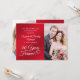 Celebre su 40º aniversario de bodas con esta elegante invitación de foto roja rubí y blanca con un diseño de tipografía de escritura a mano 40 AÑOS EN EL PARA SIEMPRE acentuado con corazones entrelazados e interconectados y 2 fotos (una en cada lado, tal vez fotos de Entonces y Ahora para un recuerdo memorable). El título también es editable para usar en un 15º u 80º aniversario de rubí. Póngase en contacto con el diseñador a través de Zazzle Chat o makeitaboutyoustore@gmail.com si desea que se modifique este diseño o en otro color, en otro producto o si desea artículos coordinados.