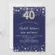 Una invitación moderna, elegante y glamurosa para un fiesta de 40 años. Un fondo azul marino, decorado con estrellas de imitación plateadas. Personalice y agregue su nombre y detalles del fiesta. El número 40 se escribe con un tipo de letra de estilo globo.