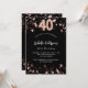 Un fondo negro clásico, decorado con estrellas doradas subió. Personalice y agregue un nombre y detalles del fiesta. El número se escribe con un guión de estilo globo.