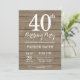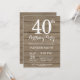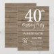 Rustic 40th Birthday Invitation. Fondo De Madera Rústica. Vintage Retro Cumpleaños. Cumpleaños de adultos. Invitar el cumpleaños de hombres o mujeres. 13. 15. 16. 18. 20. 21. 30. 40. 50. 60. 70. 80. 90. 100. Cualquier edad.
