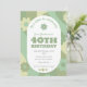 Los tonos verde sabio dan un toque moderno a este bonito diseño retro. ¡Envía a tu hijo florido interior mientras celebras el hito que es tu cuadragésimo cumpleaños! Trae una estética vintage a tu evento con este diseño funky. Personalízalo con tu nombre y todos los detalles del evento: "Es hora de celebrar. (Nombre): 40 cumpleaños" (Nota: si te gusta este diseño, ¡puedes personalizar para cualquier edad!)