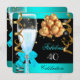 Invitación 40 Fabuloso Verde azulado Blue Gold 40 Fiesta de c