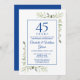 Con delicado follaje de jardín campestre en acuarela, esta elegante invitación de aniversario se puede personalizar con la información de su celebración especial del 45.º o 65.º aniversario de boda, con un fondo azul zafiro en el reverso. Diseñado por Thisisnotme©