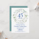 Una guirnalda decorativa de laurel verde rodea un borde circular que contiene tipografía azul zafiro de aniversario de 45 o 65 años. A continuación, los detalles de su evento de aniversario están configurados en texto clásico elegante. El reverso presenta los nombres de la pareja casada dentro de una guirnalda floral a juego. Diseñado por Thisisnotme©