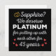 Diseño divertido, perfecto para todo aquel que haya estado casado durante 45 años y para una ceremonia de renovación de la promesa boda. ¡Es un gran conjunto para las parejas! 'Zafiro? Merecemos Platinum por aguantarse la cita de 45 años para una pareja que se casó hace 45 años o una pareja que renueva los votos bodas en su aniversario de zafiro. ¿Eres un marido o una mujer romántica? ¡Acentúa tu estilo con este arte! Gran regalo para tu amigo que se casó hace 45 años, esposo o esposa de 45 años, o papá y mamá celebrando su 45° aniversario de boda.