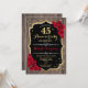Diseño elegante rústico con patrón de madera marrón oscuro, dorado con brillo falso y rosas rojas rubí.