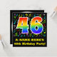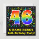 El frente de este divertido, emocionante y vibrante diseño de invitación para fiestas de cumpleaños cuenta con un gran número "46" que tiene un patrón inspirado en el gradiente del espectro arcoiris. También incluye un nombre personalizado y el mensaje "¡46º cumpleaños!". Parte del fondo tiene un patrón divertido de varias notas musicales y símbolos con una variedad de colores y tamaños. En el reverso se incluyen detalles editables sobre el evento al que se invita a los clientes potenciales. Tarjetas de invitación para fiestas de cumpleaños felices y personalizadas como esta pueden ser enviadas a potenciales invitados de una reunión de celebración que se lleva a cabo para honrar a un músico, un compositor de canciones, un cantante, o el cuarenta y seis cumpleaños de alguien más. [~Z0000427]