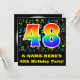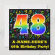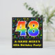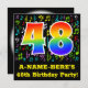La parte delantera de este divertido, emocionante y colorido diseño de invitación para fiestas de cumpleaños presenta un gran número de "48" con un patrón inspirado en el degradado del espectro del arco iris, junto con un nombre personalizado y el mensaje "¡48 cumpleaños fiesta!"Parte del fondo tiene un divertido y colorido patrón de notas musicales y símbolos. En la parte posterior se ofrece información personalizada sobre el evento al que se invita a los potenciales invitados. Tarjetas de invitación feliz y editables para fiestas como esta pueden ser usadas cuando se invita a los invitados a asistir a una reunión que se lleva a cabo para honrar a un compositor de canciones, a un cantante, a un músico o a otros cuarenta y ocho años. [~Z0000427]