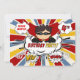 A tu super chico que está celebrando su cuarto cumpleaños le encantará esta invitación a la fiesta con tema de historietas con su nombre en tonos de niño.