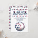 Juegos deportivos inspiraron la invitación para un fiesta barbacoa del 4 de julio con ilustraciones de béisbol, balones de basketball y balones de fútbol.