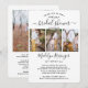 Ya sea que amigos y familiares estén practicando el distanciamiento social o que simplemente vivan lejos, conéctense con ellos en línea con una moderna y elegante ducha virtual de novias. Esta elegante invitación permite compartir 4 fotos de compromiso así como la información necesaria para conectar a larga distancia por correo y por videoconferencia en internet. Todo el texto es sencillo de personalizar. (IMAGEN PLACEMENT TIP: Una manera fácil de centrar una foto exactamente como quieres es recortarla antes de subirla al sitio web de Zazzle.) El diseño incluye cuatro imágenes de su elección, caligrafía de escritura manuscrita de moda y tipografía minimalista moderna. Esta plantilla es fácil de personalizar a la ducha de una pareja virtual, la ducha de bebé u otro evento. El diseño moderno complementa la temática boda sencilla y elegante. El espacio adicional proporcionado para un mensaje personal es perfecto si se trata de un fiesta reprogramado debido a una cancelación o postergación. ¡Felicitaciones a la novia!