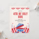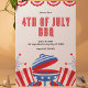 Dispara la parrilla y prepárate para celebrar el Día de la Independencia con estilo con esta invitación festiva y personalizable del 4 de julio a la barbacoa. El diseño presenta colores rojos y azules audaces, que capturan la esencia del patriotismo estadounidense. La parte superior está decorada con un conjunto clásico que añade un toque de encanto tradicional, mientras que la parte inferior exhibe un ilustracion divertido de parrilladas y banderas de barbacoa, lo que crea el ambiente perfecto para una cocina de verano. Esta invitación destaca por su texto claro y audaz que invita a sus invitados a unirse a la diversión. Los campos de personalizable le permiten personalizar la fecha, hora, ubicación y detalles de RSVP, garantizando que toda la información esencial se adapte a su evento. Perfecto para una reunión familiar o un fiesta de barrio, esta invitación a la barbacoa del 4 de julio asegurará que su celebración sea una que recordar.