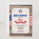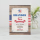 [TODOS LOS TEXTOS son editables] ¿Celebrando el cumpleaños de tu hijo? ¡Esta invitación a la fiesta temática del Día de la Independencia es perfecta! Estrella de la bandera estadounidense. Estilo retro con un fondo rústico de madera. Color del tema rojo, azul y blanco.