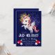 Festividad para el 4 de julio, un Pegasus unicornio con una forma de rayas rojas y blancas y cola con pezuña y cuerno azul con estrellas blancas. Fuegos artificiales en el fondo y un borde rojo y blanco. Algunas imágenes de vecteezy.com.