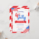 ¡Celebra el Día de la Independencia con un estruendo! Esta invitación personalizada del 4 de julio a la BBQ Party es la manera perfecta de invitar a amigos y familiares a su celebración patriótica. El diseño presenta colores vivos rojos, blancos y azules, una tipografía lúdica y elementos festivos como la bandera estadounidense y las estrellas doradas. El diseño de la invitación capta la esencia del 4 de julio, con un alegre mensaje de "Estamos teniendo una barbacoa de la celebración del 4 de julio" que se muestra de forma destacada. La frontera está adornada con rayas patrióticas, lo que añade un toque de alegría. Está diseñado para evocar la emoción y la alegría de una clásica barbacoa estadounidense y una exhibición de fuegos artificiales. Lo que hace que esta invitación sea realmente especial es su opción de personalización. Puede personalizar fácilmente los detalles del evento, incluyendo la fecha, hora, ubicación e información de RSVP, asegurando que sus invitados tengan toda la información necesaria para una memorable celebración del 4 de julio. Ya sea que esté organizando una comida informal o un gran fiesta del Día de la Independencia, esta invitación marca el tono perfecto para su evento, lo que lo convierte en un placer para sus invitados.