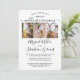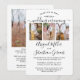 Ya sea que amigos y familiares estén practicando el distanciamiento social o simplemente vivan lejos, conéctense con ellos en línea con una elegante ceremonia virtual de bodas. Esta moderna y elegante invitación permite compartir 4 fotos de compromiso e invitar a los huéspedes a un evento de larga distancia a través de videoconferencia en internet, transmisión en vivo o un videojuego de realidad virtual. Todo el texto es sencillo de personalizar. (IMAGEN PLACEMENT TIP: Una manera fácil de centrar una foto exactamente como quieres es recortarla antes de subirla al sitio web de Zazzle.) El diseño incluye cuatro imágenes de su elección, caligrafía de escritura manuscrita de moda y tipografía minimalista moderna. El diseño moderno complementa la temática boda sencilla y elegante. El espacio adicional proporcionado para un mensaje personal es perfecto si se trata de un evento reprogramado debido a una cancelación o postergación. ¡Felicitaciones a la novia y al novio!