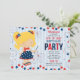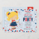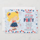 Fiesta de cumpleaños temática del 4 de julio lindo, moderno para los niños. Diseño rojo, oscuro y azul claro con las estrellas, las rayas y los fuegos artificiales. Ilustrado con un chica rubio lindo que sostiene un fuego artificial. ¡Cree su propia invitación del cumpleaños! Algunos elementos de Zenware diseñan @ Mygrafico. El *** OBSERVA POR FAVOR que si usted cambia la fuente o el tamaño de la fuente, él puede alterar cómo su invitación imprime. Imprimirá la manera que usted la ve en su monitor. No veré su tarjeta una vez que usted la pide, y Zazzle no corregirá cualquier cosa (los errores tipográficos, alineación, etc.). Mostrado aquí en papel básico