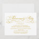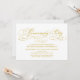 Invitación de aniversario con letra dorada amarilla en fondo blanco