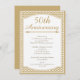 Esta invitación de aniversario de bodas número 50 cuenta con un marco blanco con un borde dorado fino y un fondo con patrón marrón dorado y blanco. El diseño incluye un divisor decorativo en la mitad superior. Está listo para ser personalizado y es adecuado para un 50º aniversario de bodas.