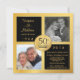 Cree sus propias invitaciones divertidas y fabulosas para la fiesta de aniversario de bodas de oro de 50 años personalizadas: dos (2) plantillas de fotos enmarcadas "entonces y ahora", con un hermoso emblema de tono dorado metálico brillante. Personalice el nombre, la fecha y los detalles para su celebración especial del aniversario de bodas de oro. **NOTA: Tamaño para tarjetas de invitación CUADRADAS. Otros tamaños y estilos disponibles para el aniversario de 50 años, cumpleaños y otras celebraciones de hitos felices.