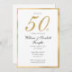 Invitación para Bodas de Oro, 50 Aniversario de Boda. Estar casado cincuenta años es todo un logro. Esta invitación de celebración del 50 aniversario de boda es perfecta para la pareja de oro que quiere celebrar su día especial con estilo con familiares y amigos. El diseño presenta un marco dorado (efecto de color dorado, no de lámina de oro). La tarjeta se puede personalizar con todos los detalles necesarios para el día especial. La invitación es parte de la colección de Aniversario de Oro 50 que se puede ver en la tienda.